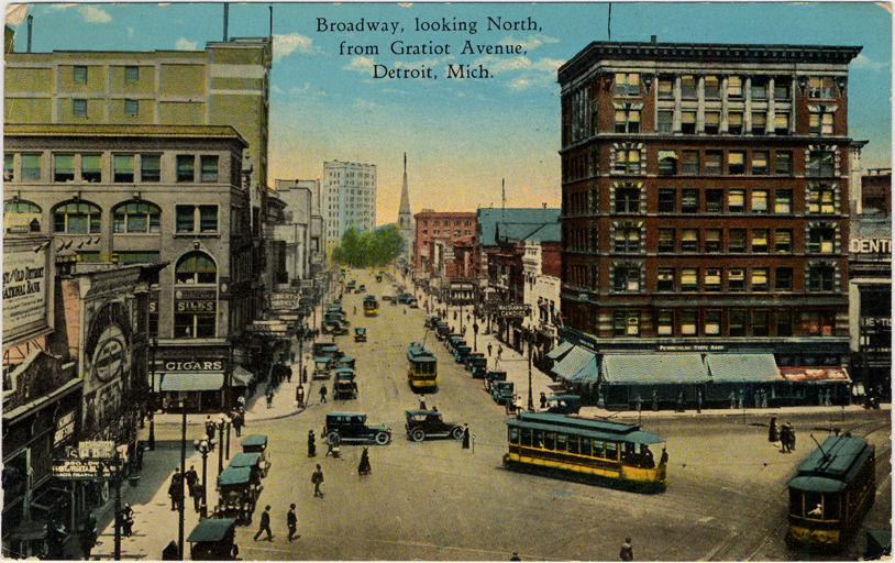 Broadway, looking north, from Gratiot Avenue