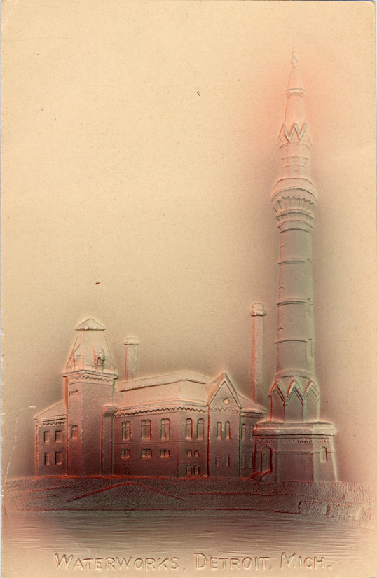 Favorite this☆ Waterworks, Detroit, Michigan Description: Raised illustration of waterworks in Waterworks Park, including water tower. Printed on front: "Waterworks, Detroit, Mich." Details Resource ID: bh000430 Subject: Water towers--Michigan--Detroit Parks--Michigan--Detroit Pumping stations--Michigan--Detroit Postcards Date Issued: Unknown year Format: 1 postcard : col. ; 5.5 x 3.5 in. Member of: Burton Historical Collection Filing Location: D/Waterworks Rights: Physical rights are retained by DPL. Copyright is retained in accordance with U.S. copyright laws.