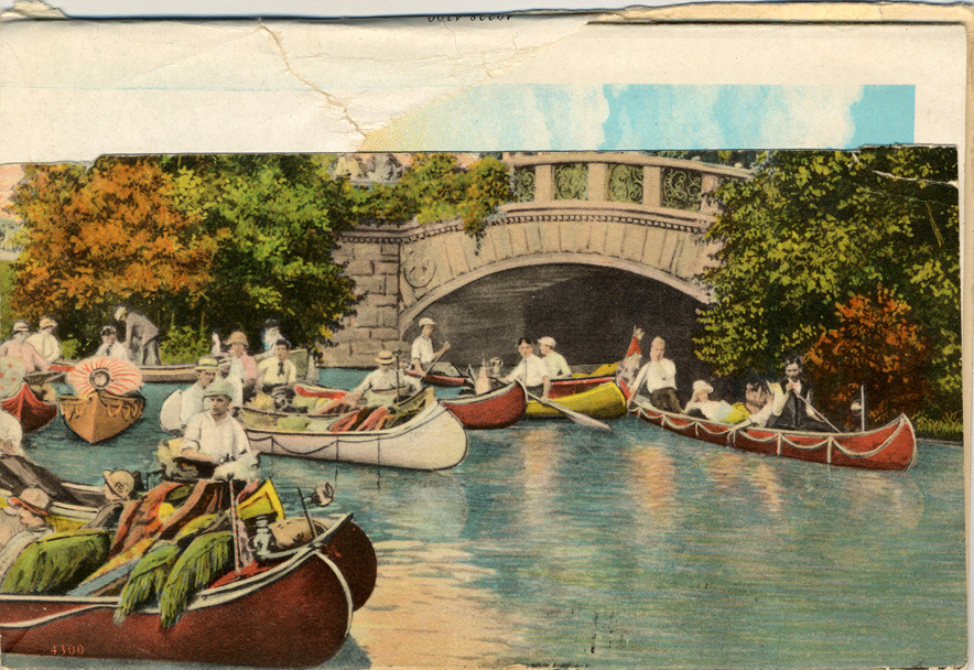 Front of postcard depicts canal scene with people in canoes. Postcard contains a booklet of images, among them are images of the Fisher building, the Detroit Yacht club, Grand Circus Park, and Cadillac Square. Printed on back: "Latest view folder of Detroit, Mich. Made by Curt Teich & Co., Chicago. For Wolverine News Co., Detroit, Mich. [Copyright] C.T. & Co." Printed inside folder: "Detroit the Beautiful--City of opportunity. Detroit is the most popular convention and tourist city in America. [etc.]."