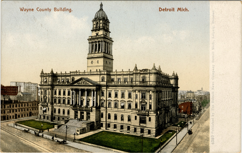 Favorite this☆ Wayne County Building Description: View at an angle of Wayne County building. Printed on front: "Wayne County building, Detroit, Mich. 6380, published by the Detroit News Company, Detroit, Mich., Leipzig, Dresden." Details Resource ID: bh000538 Subject: Municipal buildings--Michigan--Detroit Postcards Publisher: Detroit News Company Date Issued: Unknown year Format: 1 postcard : col. ; 3.5 x 5.5 in. Member of: Burton Historical Collection Filing Location: D/Buildings-Wayne Co. bldg. Rights: Physical rights are retained by DPL. Copyright is retained in accordance with U.S. copyright laws.