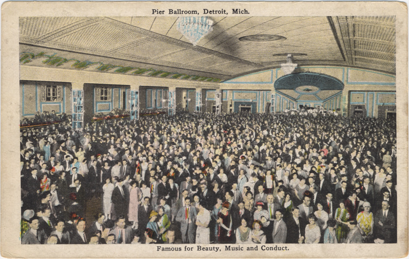 Favorite this☆ Pier Ballroom Description: View of crowd at Pier Ballroom at Palace Gardens amusement park. Printed on front: "Pier Ballroom, Detroit, Mich. Famous for beauty, music and conduct." Printed on back: "E.C. Kropp Co., Milwaukee, 30520 N." Details Resource ID: bh000742 Subject: Ballrooms--Michigan--Detroit Dance halls--Michigan--Detroit Crowds--Michigan--Detroit Postcards Publisher: E.C. Kropp Co. Date Issued: Unknown year Format: 1 postcard : col. ; 3.5 x 5.5 in. Member of: Burton Historical Collection Filing Location: D/Amusement parks-Riverview Rights: Physical rights are retained by DPL. Copyright is retained in accordance with U.S. copyright laws.