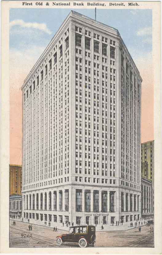 Favorite this☆ First National Bank Description: View of First National Bank building; automobile in foreground. Printed on front: "First Old & National Bank building, Detroit, Mich." Handwritten on back in upper right corner: "3/10/22." Details Resource ID: bh000777 Subject: Bank buildings--Michigan--Detroit Office buildings--Michigan--Detroit Skyscrapers--Michigan--Detroit Postcards Date Issued: Unknown year Format: 1 postcard : col. ; 5.5 x 3.5 in. Member of: Burton Historical Collection Filing Location: D/Banks-First National Rights: Physical rights are retained by DPL. Copyright is retained in accordance with U.S. copyright laws.