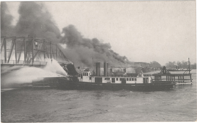 Favorite this☆ Belle Isle Bridge fire Description: View of firemen spraying jets of water from fireboat on Belle Isle Bridge fire. Smoke rises from truss bridge. Printed on back: "Belle Isle Bridge Fire, April 27, 1915. W.D. Benham Co., Detroit, Mich." Details Resource ID: bh000809 Subject: Fires--Michigan--Detroit Truss bridges--Fires and fire prevention--Michigan--Detroit Fireboats--Michigan--Detroit Belle Isle Park (Detroit, Mich.) Postcards Publisher: W.D. Benham Co. Date Issued: Unknown year Format: 1 postcard ; 3.5 x 5.5 in. Member of: Burton Historical Collection Filing Location: D/Bridges-Belle Isle Rights: Physical rights are retained by DPL. Copyright is retained in accordance with U.S. copyright laws.