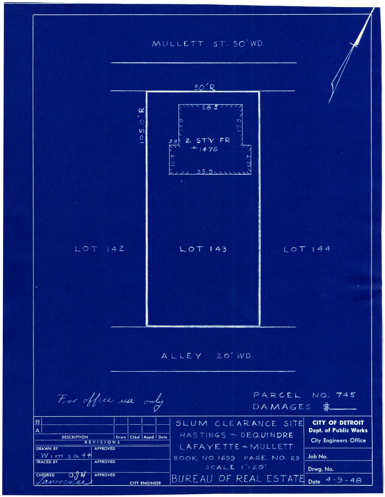 Part of a collection that contains condemnation files, photographs, blueprints and descriptions of slum clearance housing parcels for the City of Detroit. Of particular note are areas which included the neighborhoods known as Paradise Valley, Black Bottom, Corktown and the Jeffries Housing Project.