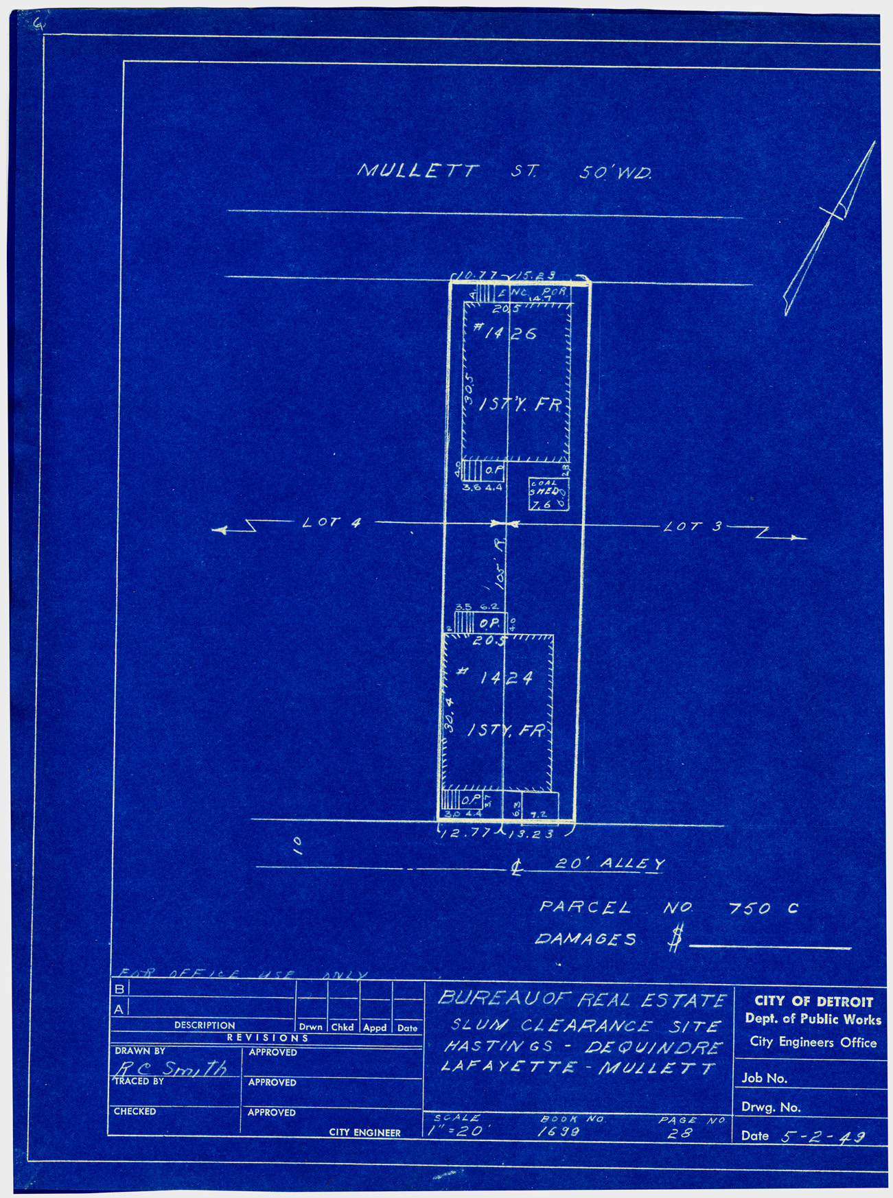 Part of a collection that contains condemnation files, photographs, blueprints and descriptions of slum clearance housing parcels for the City of Detroit. Of particular note are areas which included the neighborhoods known as Paradise Valley, Black Bottom, Corktown and the Jeffries Housing Project.