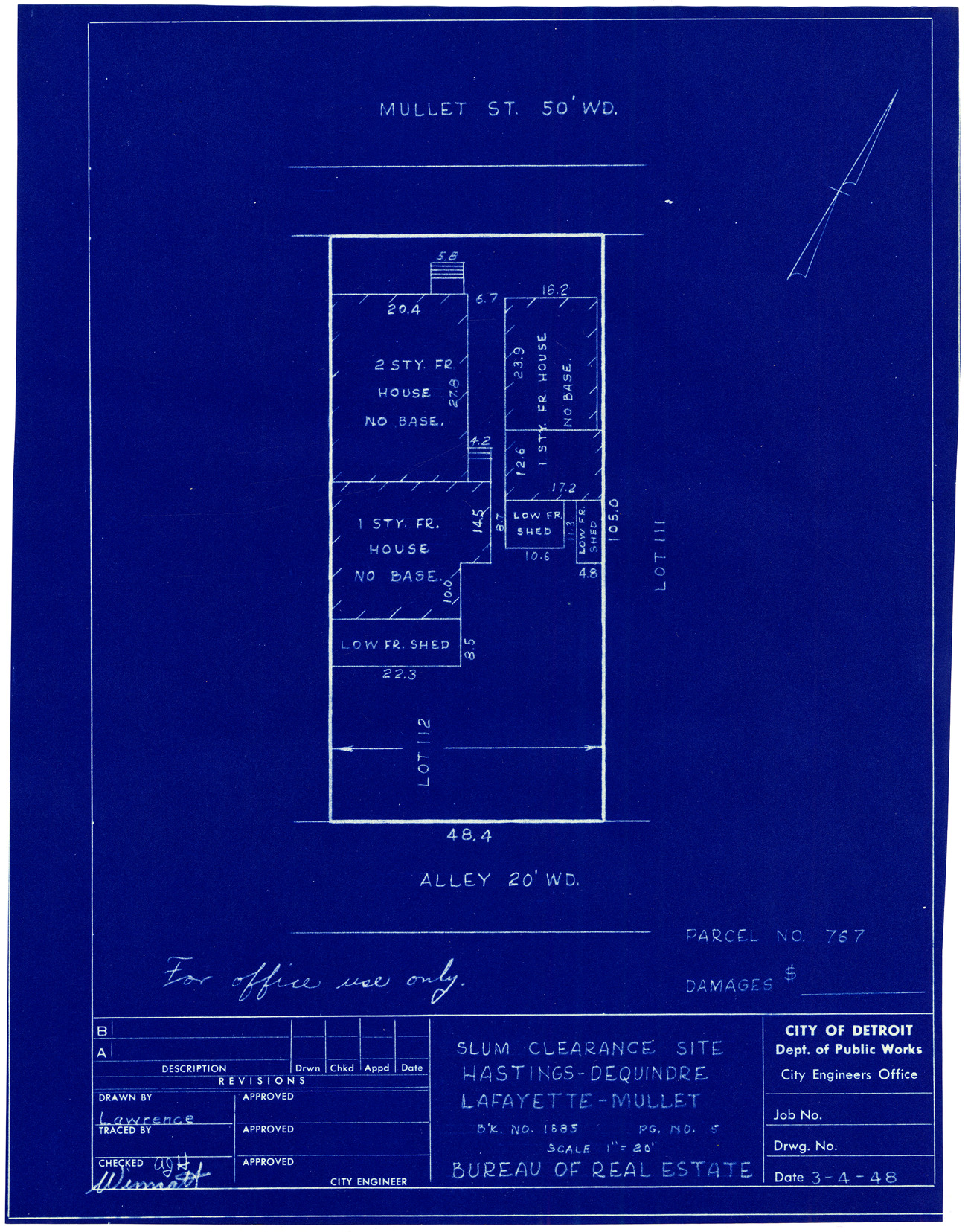 Part of a collection that contains condemnation files, photographs, blueprints and descriptions of slum clearance housing parcels for the City of Detroit. Of particular note are areas which included the neighborhoods known as Paradise Valley, Black Bottom, Corktown and the Jeffries Housing Project.