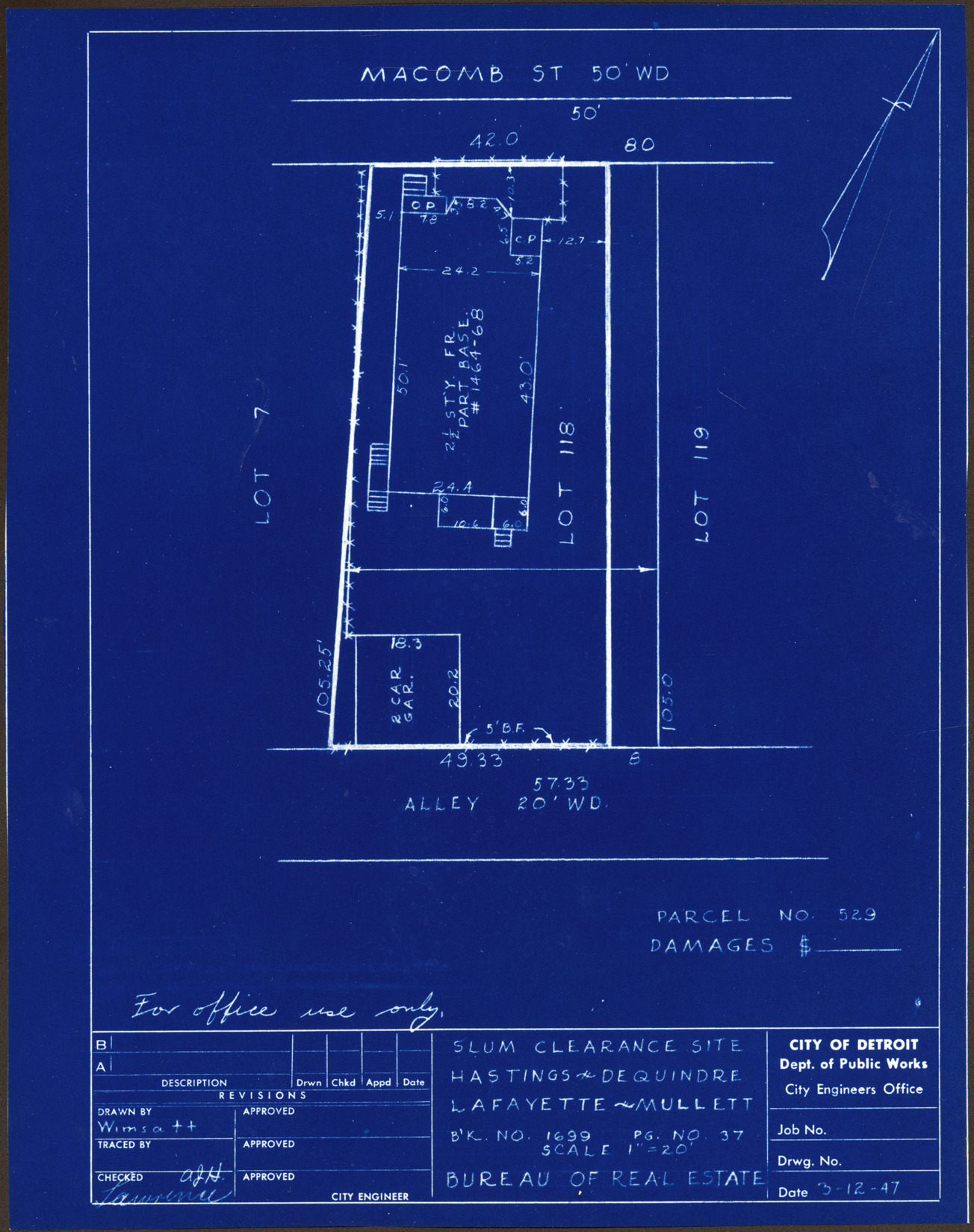Part of a collection that contains condemnation files, photographs, blueprints and descriptions of slum clearance housing parcels for the City of Detroit. Of particular note are areas which included the neighborhoods known as Paradise Valley, Black Bottom, Corktown and the Jeffries Housing Project.