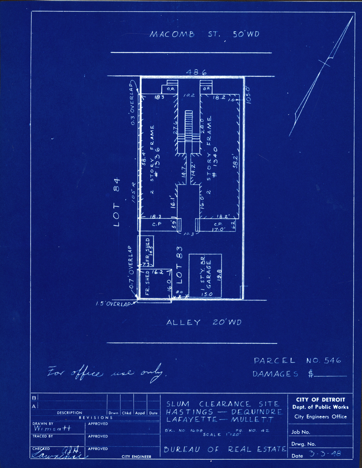 Part of a collection that contains condemnation files, photographs, blueprints and descriptions of slum clearance housing parcels for the City of Detroit. Of particular note are areas which included the neighborhoods known as Paradise Valley, Black Bottom, Corktown and the Jeffries Housing Project.