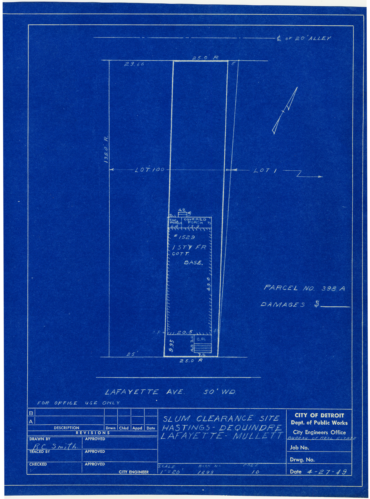 Part of a collection that contains condemnation files, photographs, blueprints and descriptions of slum clearance housing parcels for the City of Detroit. Of particular note are areas which included the neighborhoods known as Paradise Valley, Black Bottom, Corktown and the Jeffries Housing Project.