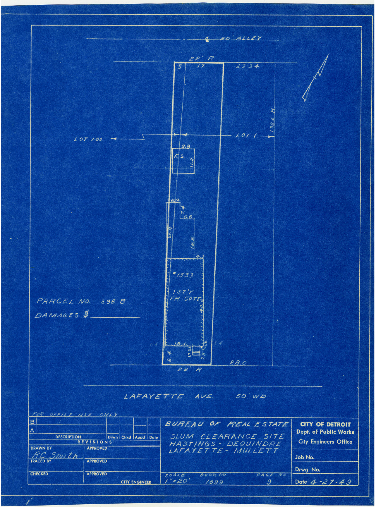 Part of a collection that contains condemnation files, photographs, blueprints and descriptions of slum clearance housing parcels for the City of Detroit. Of particular note are areas which included the neighborhoods known as Paradise Valley, Black Bottom, Corktown and the Jeffries Housing Project.