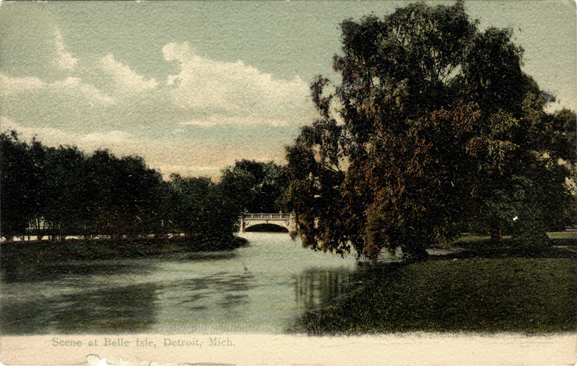 Favorite this☆ Canal on Belle Isle Description: View of stone bridge over canal on Belle Isle; banks of canal are lined with trees. Printed on front: "Scene at Belle Isle, Detroit, Mich." Printed on back: "313, H.L. Woehler, Buffalo, N.Y. & Dresden, Germany." Details Resource ID: bh002839 Subject: Belle Isle Park (Detroit, Mich.) Canals--Michigan--Detroit Stone bridges--Michigan--Detroit Postcards Publisher: H.L. Woehler Date Issued: Unknown year Format: 1 postcard : col. ; 3.5 x 5.5 in. Member of: Burton Historical Collection Filing Location: D/Parks-Belle Isle Rights: Physical rights are retained by DPL. Copyright is retained in accordance with U.S. copyright laws.
