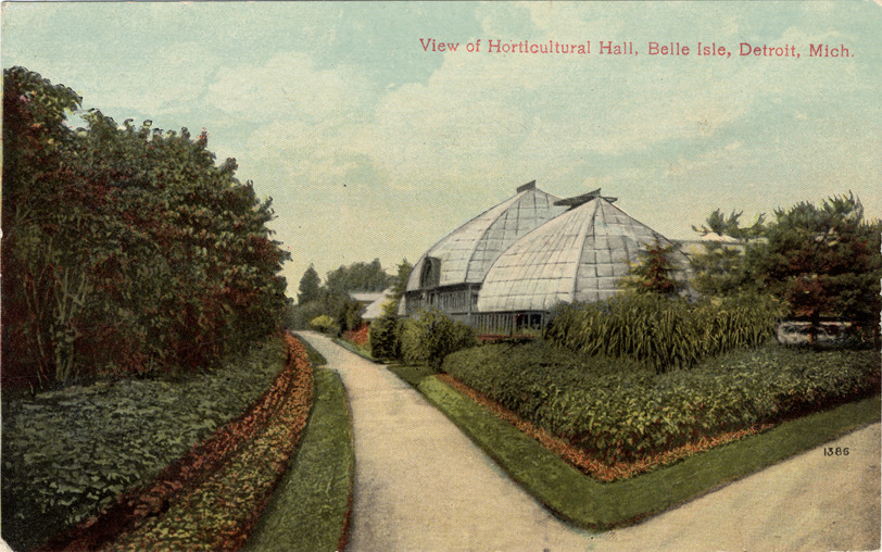 Favorite this☆ Horticultural Hall on Belle Isle Description: Side view of Horticultural Hall on Belle Isle. Two glass-paned domes are situated in landscaped grounds along road. Printed on front: "View of Horticultural Hall, Belle Isle, Detroit, Mich., 1386." Details Resource ID: bh002927 Subject: Belle Isle Park (Detroit, Mich.) Conservatories--Michigan--Detroit Greenhouses--Michigan--Detroit Postcards Date Issued: Unknown year Format: 1 postcard : col. ; 3.5 x 5.5 in. Member of: Burton Historical Collection Filing Location: D/Parks-Belle Isle Rights: Physical rights are retained by DPL. Copyright is retained in accordance with U.S. copyright laws.