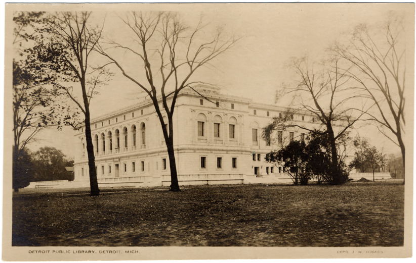 Favorite this☆ Detroit Public Library Description: Front and side view of the Detroit Public Library located on Woodward Avenue. Italian Renaissance style building was designed by Cass Gilbert. Printed on front: "Detroit Public Library, Detroit, Mich. Copr. J.W. Hughes." Details Resource ID: bh004524 Creator: Hughes, J. Wesley Subject: Detroit Public Library Gilbert, Cass, 1859-1934 Public libraries--Michigan--Detroit Library buildings--Michigan--Detroit Photographers--Michigan--Detroit Photographic prints Postcards Date Issued: Unknown year Format: 1 postcard ; 3.5 x 5.5 in. Member of: Burton Historical Collection Filing Location: D/Libraries-Detroit Public-Main Rights: Physical rights are retained by DPL. Copyright is retained in accordance with U.S. copyright laws.