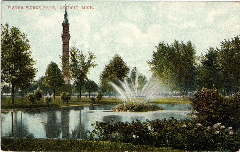 Favorite this☆ Waterworks Park Description: View of fountain in center of pond at Waterworks Park; water tower in background. Printed on front: "Water Works Park, Detroit, Mich." Printed on back: "I-142 Wolverine News Co., Detroit. Printed in Germany." Details Resource ID: bh004696 Subject: Fountains--Michigan--Detroit Water towers--Michigan--Detroit Parks--Michigan--Detroit Postcards Publisher: Wolverine News Co. Date Issued: Unknown year Format: 1 postcard : col. ; 3.5 x 5.5 in. Member of: Burton Historical Collection Filing Location: D/Parks-Waterworks Rights: Physical rights are retained by DPL. Copyright is retained in accordance with U.S. copyright laws.
