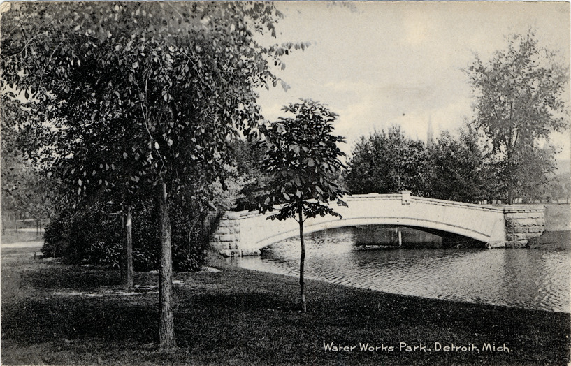Favorite this☆ Bridge at Waterworks Park Description: View of stone bridge over canal in Waterworks Park. Printed on front: "Water Works Park, Detroit, Mich." Printed on back: "D834, the Rotograph Co., N.Y. city (Germany)." Handwritten on back in upper right corner: "5/8/08." Details Resource ID: bh004834 Subject: Parks--Michigan--Detroit Stone bridges--Michigan--Detroit Canals--Michigan--Detroit Postcards Publisher: Rotograph Co. Date Issued: Unknown year Format: 1 postcard ; 3.5 x 5.5 in. Member of: Burton Historical Collection Filing Location: D/Parks-Waterworks Rights: Physical rights are retained by DPL. Copyright is retained in accordance with U.S. copyright laws.