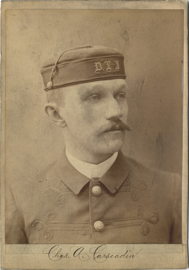 Favorite this☆ Portrait of Charles A. Carscadin Description: Cabinet card photograph of Charles A. Carscadin in uniform, from the Detroit Light Infantry Veterans Corps photo album. The Corps is an offshoot of the Detroit Light Guard. "Chas. A. Carscadin" handwritten on paper pasted on card front and on back. Details Resource ID: bh005043 Subject: Michigan. National Guard. Infantry, 225th. Battalion, 1st Detroit (Mich.)--Militia United States--History--Civil War, 1861-1865--Veterans Soldiers--Michigan--Detroit Military uniforms Portrait photography Cabinet photographs Photographic prints Date Issued: Unknown year in the decade of the 1880s Format: 1 cabinet card ; image 5.25 x 4 in. Member of: Burton Historical Collection Filing Location: D/Militia-Detroit Light Infantry Veterans Corp. Rights: Physical rights are retained by DPL. Copyright is retained in accordance with U.S. copyright laws.