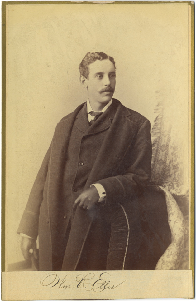 Cabinet card photograph of William R. Ellis, from the Detroit Light Infantry Veterans Corps photo album. The Corps is an offshoot of the Detroit Light Guard. "Wm. R. Ellis" handwritten on paper pasted on card front on back. Printed on back: "Randall, photographer, 220 Woodward Ave., Detroit, Mich."