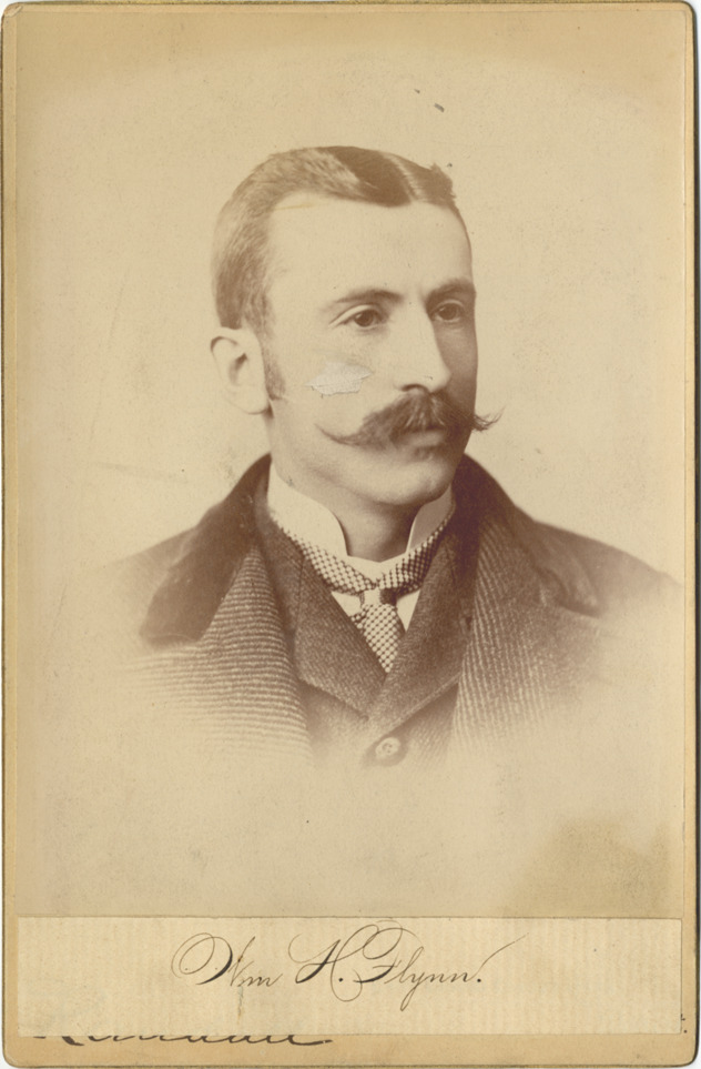 Cabinet card photograph of William H. Flynn, from the Detroit Light Infantry Veterans Corps photo album. The Corps is an offshoot of the Detroit Light Guard. "Wm. H. Flynn" handwritten on paper pasted on card front which appears to cover photographers information, and handrwitten on back.