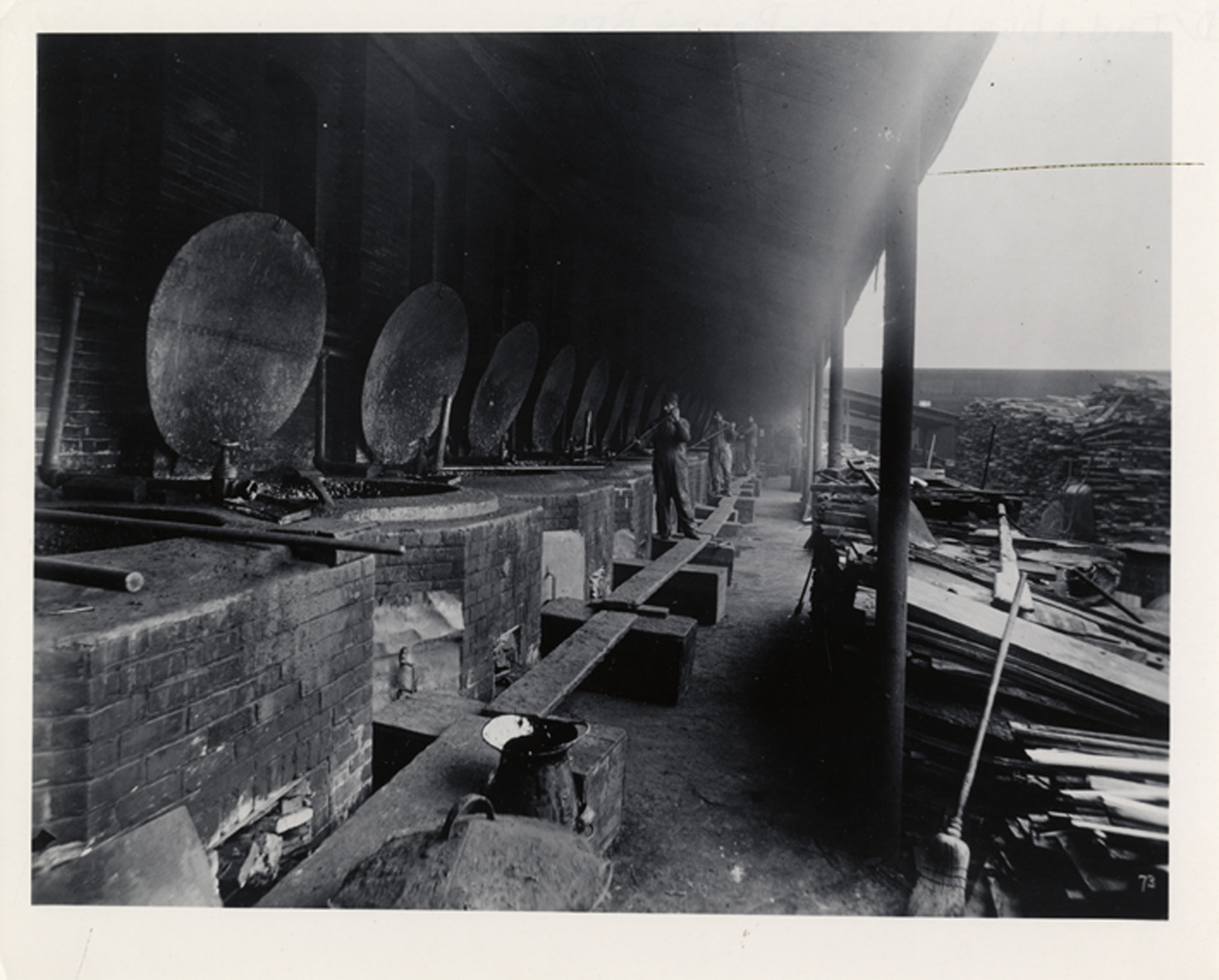 Favorite this☆ Workers stirring vats at Berry Brothers Description: View of workers stirring contents of brick vats at Berry Brothers. Details Resource ID: bh007355 Subject: Varnish industry--Michigan--Detroit Varnish industry--Michigan--Detroit--Employees Vats--Michigan--Detroit Photographic prints Date Issued: Unknown year Format: 1 photographic print ; 8 x 10 in. Member of: Burton Historical Collection Filing Location: D/Industries & business houses-Berry Bros. Rights: Physical rights are retained by DPL. Copyright is retained in accordance with U.S. copyright laws.