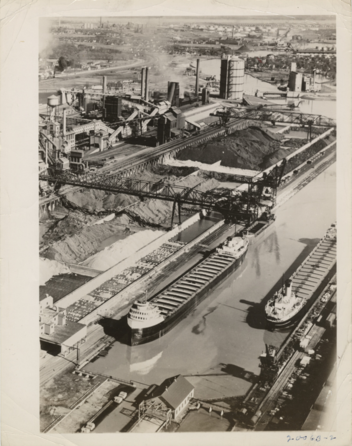 Favorite this☆ Freighters along riverfront Description: View of two freighters along Detroit riverfront; factory in background. Details Resource ID: bh007371 Subject: Cargo ships--Michigan--Detroit Waterfronts--Michigan--Detroit Factories--Michigan--Detroti Photographic prints Date Issued: Unknown year Format: 1 photographic print ; 10 x 8 in. Member of: Burton Historical Collection Filing Location: D/Riverfront Rights: Physical rights are retained by DPL. Copyright is retained in accordance with U.S. copyright laws.