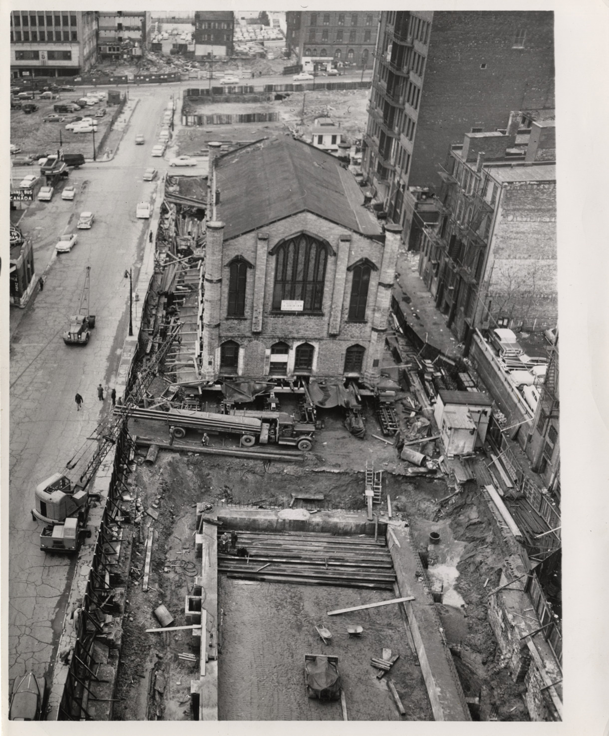 Favorite this☆ Relocation of Mariners' Church Description: Bird's-eye view of Mariners' Church during move to new location. Foundation in foreground; trucks and crane on site. Details Resource ID: bh007389 Subject: Mariners' Church of Detroit (Detroit, Mich.) Anglican church buildings--Michigan--Detroit Moving of buildings, bridges, etc.--Michigan--Detroit Photographic prints Date Issued: 1955 Format: 1 photographic print ; 10 x 8 in. Member of: Burton Historical Collection Filing Location: D/Churches-Prot. Episc.-Mariners Rights: Physical rights are retained by DPL. Copyright is retained in accordance with U.S. copyright laws.