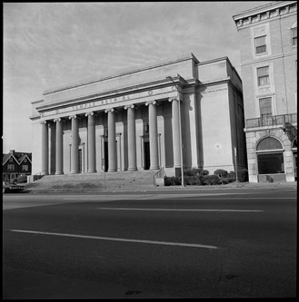 View of Temple Beth El, located on Woodward Avenue. Neoclassical style synagogue was designed by Albert Kahn.