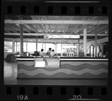 View of employees and customer at indoor refreshment stand at Bob-Lo Amusement Park.