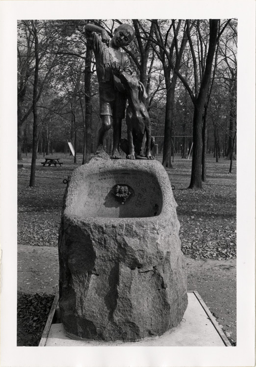 Favorite this☆ Newsboy Fountain at Belle Isle Description: View of fountain with statue of paperboy holding newspaper bag and standing next to his dog, located on Belle Isle on Central Avenue. Sculptor was Frederick A.T. Dunbar. Inscription reads: "The Evening News to the newsboys of Detroit." Details Resource ID: bh009172 Subject: Fountains--Michigan--Detroit Paperboys--Statues--Michigan--Detroit Belle Isle Park (Detroit, Mich.) Photographic prints Date Issued: Unknown year Format: 1 photographic print ; 5 x 3.5 in. Member of: Burton Historical Collection Filing Location: Outdoor civic memorials and historical markers, 1951, Detroit City Plan Commission, revision containing new photographs, 718 D484oa Rights: Physical rights are retained by DPL. Copyright is retained in accordance with U.S. copyright laws.
