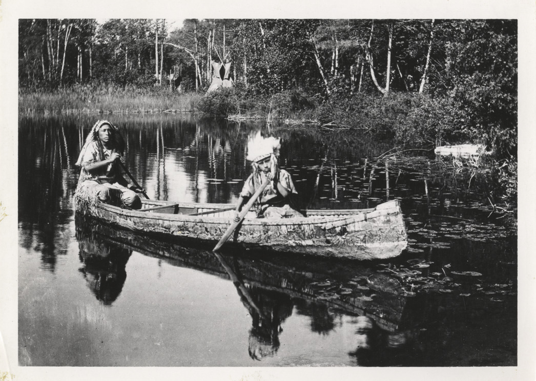 Native American men in canoe