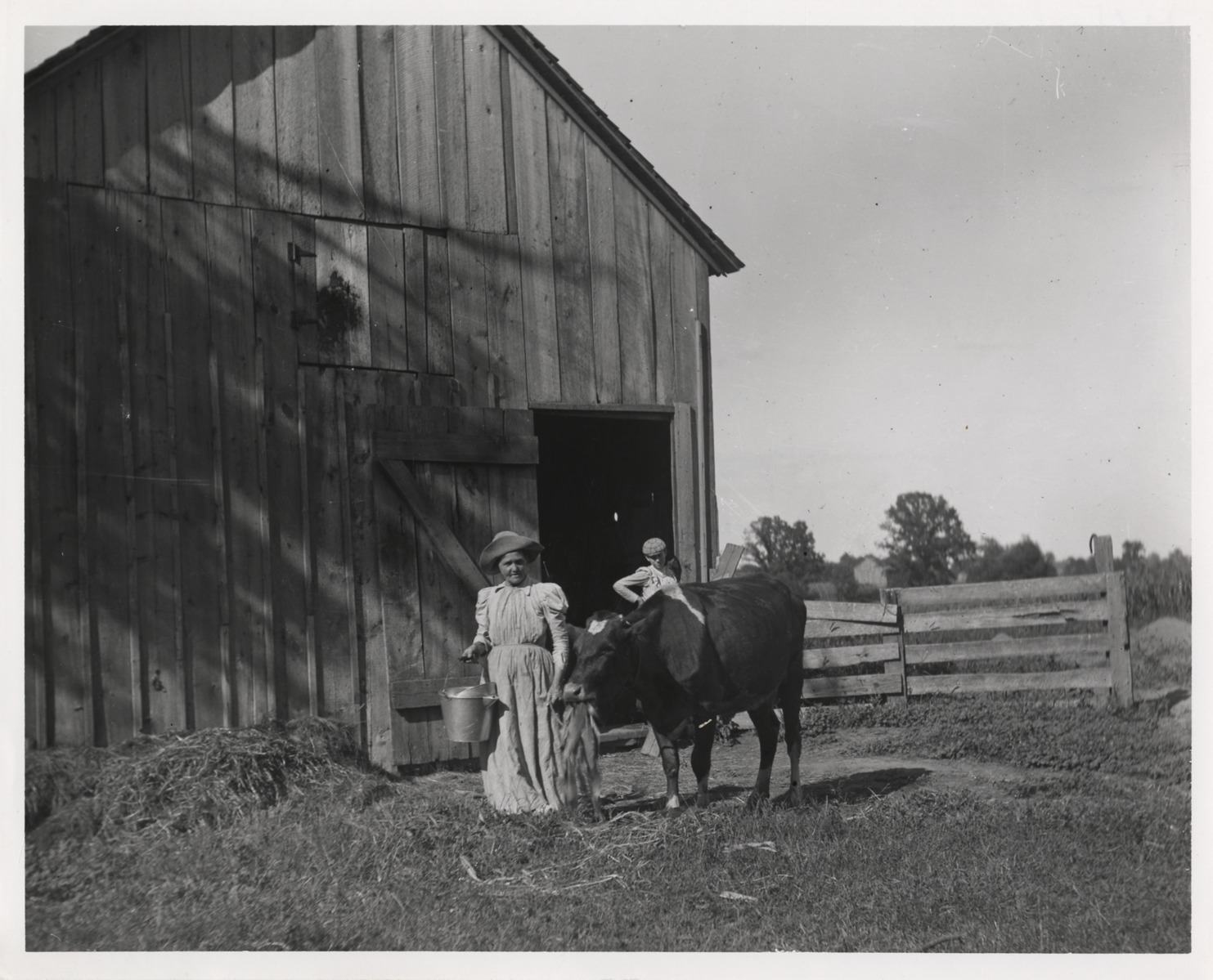 Favorite this☆ Woman and cow on farm Description: View of woman leading cow out of barn, holding a milking bucket; another woman stands in entrance of barn. Details Resource ID: bh009192 Subject: Barns--Michigan Cows--Michigan Women in agriculture--Michigan Photographic prints Date Issued: Unknown year Format: 1 photographic print ; 8 x 10 in. Member of: Burton Historical Collection Filing Location: M/Farms Negative Number: BHC glass neg. no. 4874 Rights: Physical rights are retained by DPL. Copyright is retained in accordance with U.S. copyright laws.