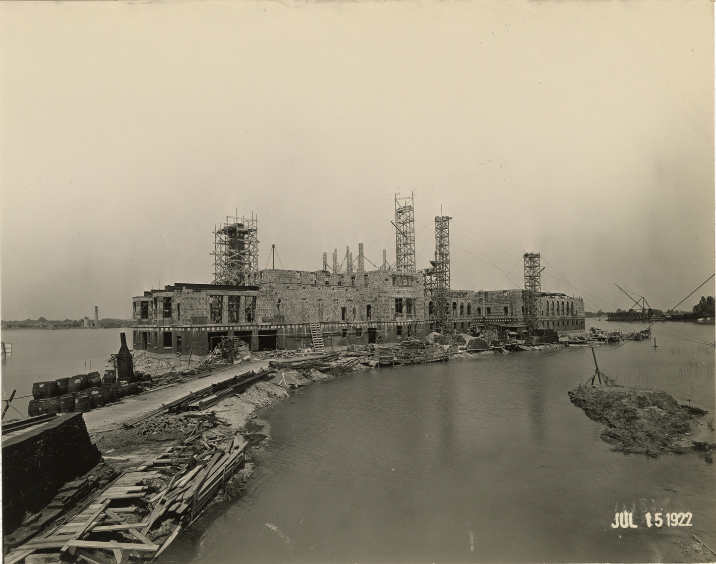 Favorite this☆ Detroit Yacht Club under construction Description: View of the Detroit Yacht Club during construction. Printed on front: "Jul 15, 1922." Stamped on back: "Godfrey and Grossman, commercial photographers. Fort Street West, Detroit." Details Resource ID: bh009250 Creator: Godfrey and Grossman Subject: Yacht clubs--Michigan--Detroit Clubhouses--Michigan--Detroit--Design and construction Photographers--Michigan--Detroit Photographic prints Date Issued: 1922-07-15 Format: 1 photographic print mounted on fabric ; 7.5 x 9.5 in. Member of: Burton Historical Collection Filing Location: D/Organizations-Detroit Yacht Club, 1921-1922-Construction Rights: Physical rights are retained by DPL. Copyright is retained in accordance with U.S. copyright laws.