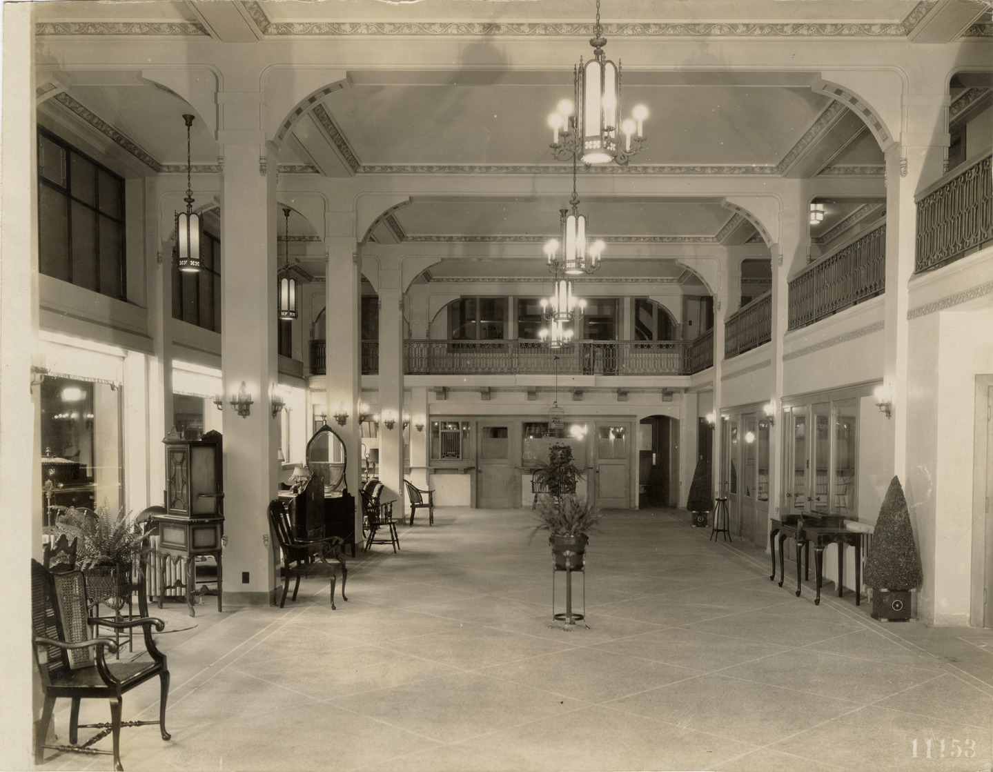 Favorite this☆ Lobby, Kobacker furniture store, Flint, Michigan Description: View of the lobby of the Kobacker furniture store in Flint, Michigan. Typed on back: "Kobackers store, Flint, Mich." Handwritten on back: "Kobacker's store, Flint, Mich. Malcomson & Higginbotham, architects." Details Resource ID: bh009263 Subject: Lobbies (Rooms)--Michigan--Flint Commercial buildings--Michigan--Flint Furniture industry and trade--Michigan--Flint Malcomson and Higginbotham Photographic prints Date Issued: Unknown year Format: 1 photographic print mounted on fabric ; 7.5 x 9.75 in. Member of: Burton Historical Collection Filing Location: M/Localities-Flint-Buildings-Kobacker Rights: Physical rights are retained by DPL. Copyright is retained in accordance with U.S. copyright laws.