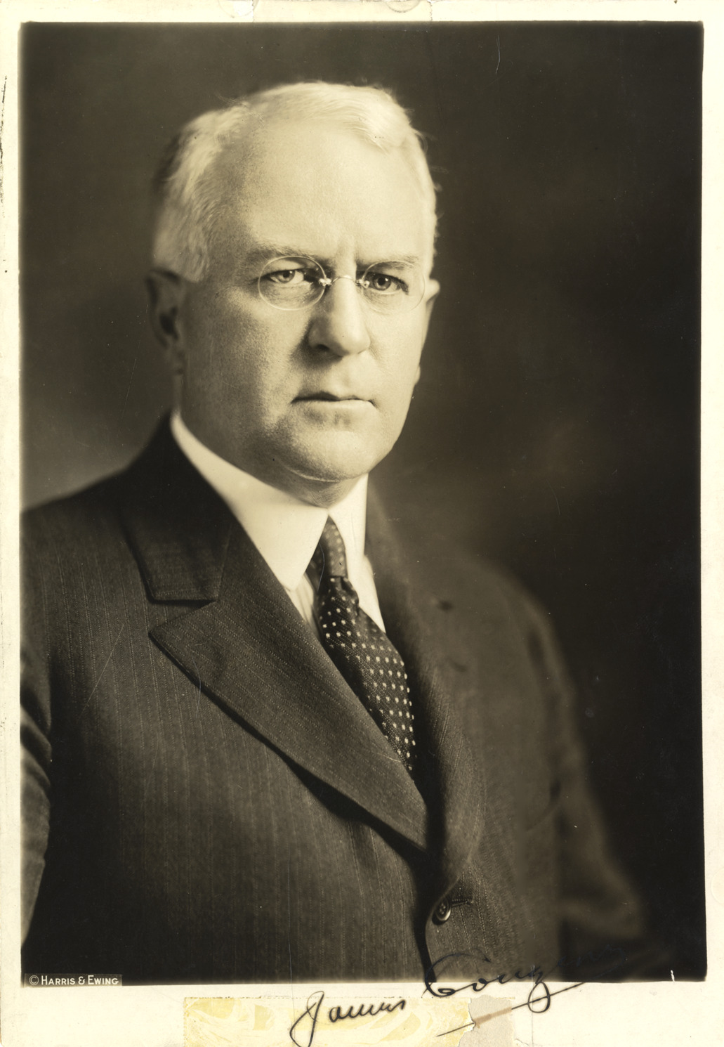 Favorite this☆ James Couzens Description: Portrait of James Couzens. Printed on front: "Harris & Ewing." Autographed on front: "James Couzens." Details Resource ID: bh009304 Creator: Harris & Ewing Subject: Couzens, James, 1872-1936 Men--Portraits Photographers--Washington (D.C.) Photographic prints Date Issued: Unknown year Format: 1 photographic print mounted on cardboard ; 10.25 x 7 in. Member of: Burton Historical Collection Filing Location: E&M B C837 Rights: Physical rights are retained by DPL. Copyright is retained in accordance with U.S. copyright laws.