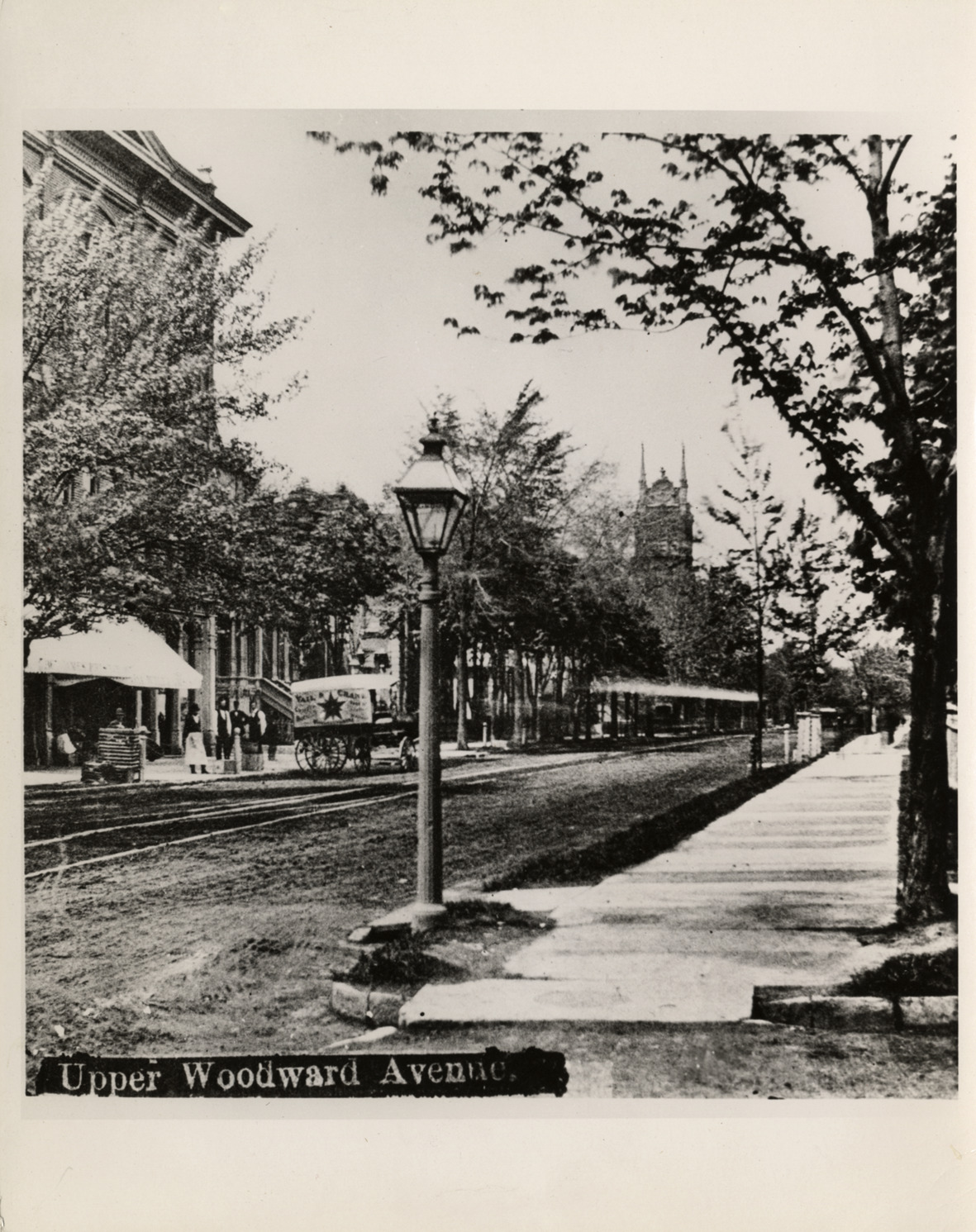 Favorite this☆ Woodward Avenue between Vernor and Sibley Streets Description: View of tree-lined Woodward Ave. between Vernor St. and Sibley St. Lamppost and sidewalk in foreground. Printed on front: "Upper Woodward Avenue." Handwritten on back: "Woodward Ave. from Vernor to Sibley in 1879." Details Resource ID: bh009471 Subject: Woodward Avenue (Mich.) Streets--Michigan--Detroit Photographic prints Date Issued: 1879 Format: 1 photographic print ; 10 x 8 in. Member of: Burton Historical Collection Filing Location: D/Streets-Woodward Rights: Physical rights are retained by DPL. Copyright is retained in accordance with U.S. copyright laws.