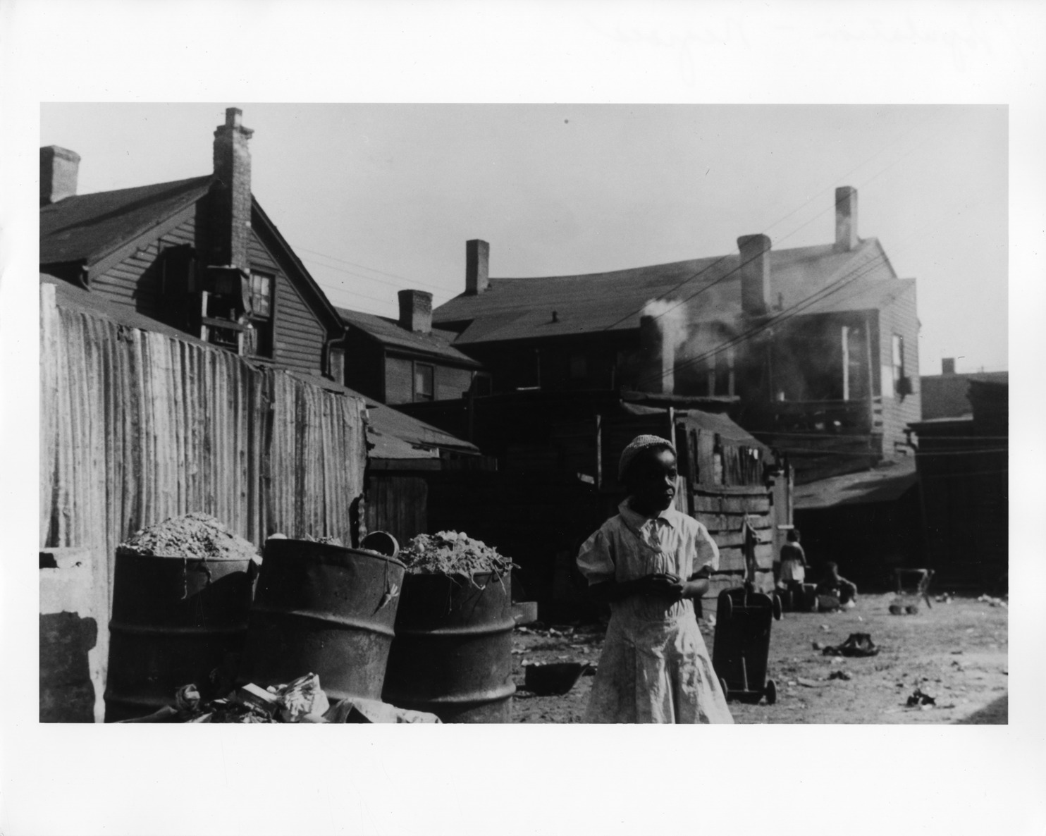 Favorite this☆ Girl standing behind houses Description: View of young girl standing behind fence and houses, next to several trash cans. Details Resource ID: bh009487 Subject: African American girls Photographic prints Date Issued: Unknown year Format: 1 photographic print ; 8 x 10 in. Member of: Burton Historical Collection Filing Location: D/Population-African Americans Rights: Physical rights are retained by DPL. Copyright is retained in accordance with U.S. copyright laws.