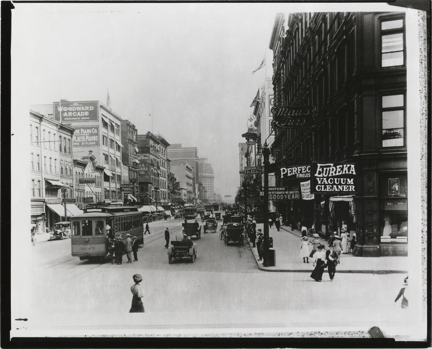 Favorite this☆ Woodward Avenue Description: View of Woodward Ave. in Detroit, showing Woodward Ave. streetcar no. 1645, cars, pedestrians and commercial buildings. Details Resource ID: bh009703 Subject: Cable cars (Streetcars)--Michigan--Detroit Woodward Avenue (Mich.) Streets--Michigan--Detroit Commercial buildings--Michigan--Detroit Automobiles--Michigan--Detroit Photographic prints Date Issued: Unknown year Format: 1 photographic print ; 8 x 10 in. Member of: Burton Historical Collection Filing Location: D/Street cars-Woodward Rights: Physical rights are retained by DPL. Copyright is retained in accordance with U.S. copyright laws.