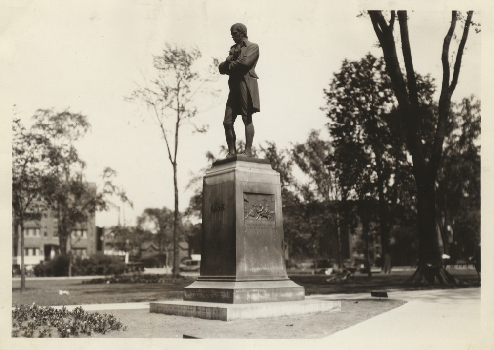 Favorite this☆ Robert Burns statue Description: View of Robert Burns statue, located in Cass Park at Second Avenue. Monument was designed by George A. Lawson. Handwritten on back: "Robt. Burns statue, Cass Pk. at 2nd, 6-15-29." Details Resource ID: bh009810 Subject: Burns, Robert, 1759-1796--Statues--Michigan--Detroit Burns, Robert, 1759-1796--Monuments--Michigan--Detroit Photographic prints Date Issued: 1929-06-15 Format: 1 photographic print ; 5 x 7 in. Member of: Burton Historical Collection Filing Location: Outdoor civic memorials and memorial and historical tablets located in the city of Detroit, 1939, City Plan Commission, 718 D484o Rights: Physical rights are retained by DPL. Copyright is retained in accordance with U.S. copyright laws.