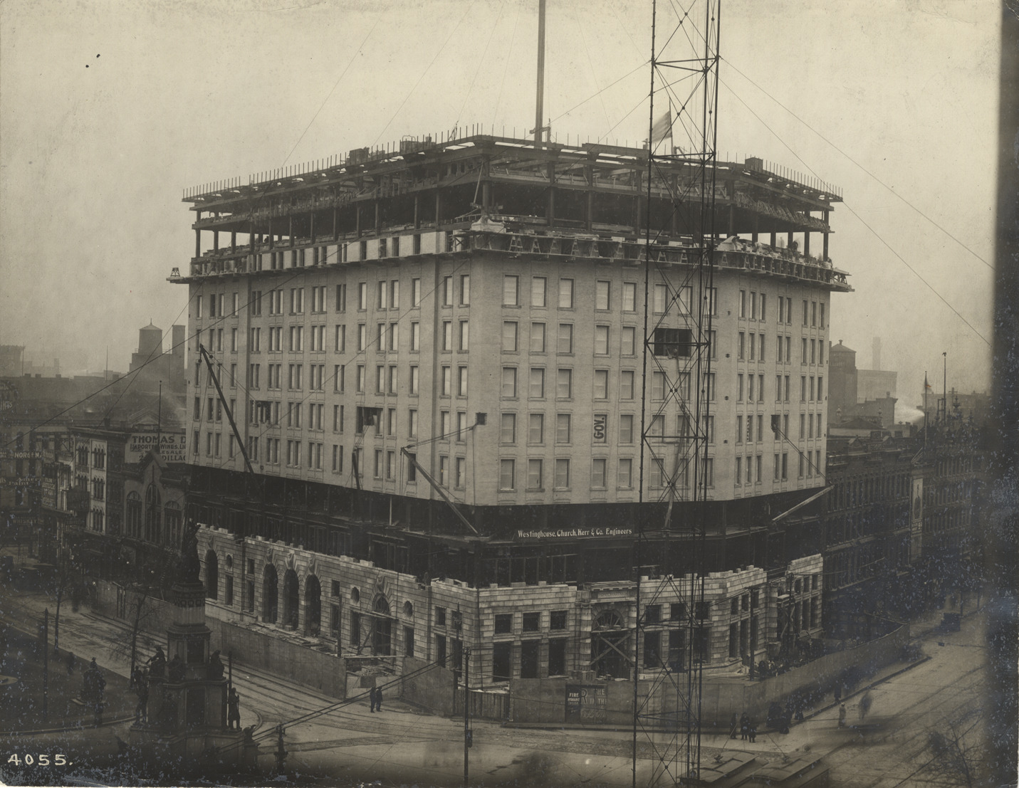 Favorite this☆ Hotel Pontchartrain under construction Description: View of Hotel Pontchartrain during construction with partially completed facade, surrounded by wooden fence. "Westinghouse, Church, Kerr & Co. Engineers" sign on building. Details Resource ID: bh009861 Subject: Hotels--Michigan--Detroit--Design and construction Westinghouse, Church, Kerr & Company Photographic prints Date Issued: Unknown year Format: 1 photographic print mounted on fabric ; 7.5 x 9.75 in. Member of: Burton Historical Collection Filing Location: D/Hotels-Pontchartrain-Construction Rights: Physical rights are retained by DPL. Copyright is retained in accordance with U.S. copyright laws.
