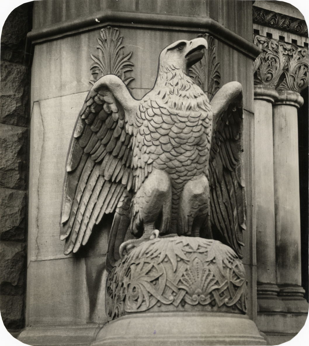 Favorite this☆ Eagle sculpture on U.S. Post Office facade, Detroit Description: View of eagle sculpture on facade of Detroit Post Office. Handwritten on back: "Eagle story, E. McDowell, Sunday." Details Resource ID: bh009880 Subject: Eagles in art Architecture--Details Sculpture--Michigan--Detroit Post office buildings--Michigan--Detroit Photographic prints Date Issued: Unknown year Format: 1 photographic print ; 8 x 7 in. Member of: Burton Historical Collection Filing Location: D/Buildings-Federal-Post Office (Detroit) Rights: Physical rights are retained by DPL. Copyright is retained in accordance with U.S. copyright laws.
