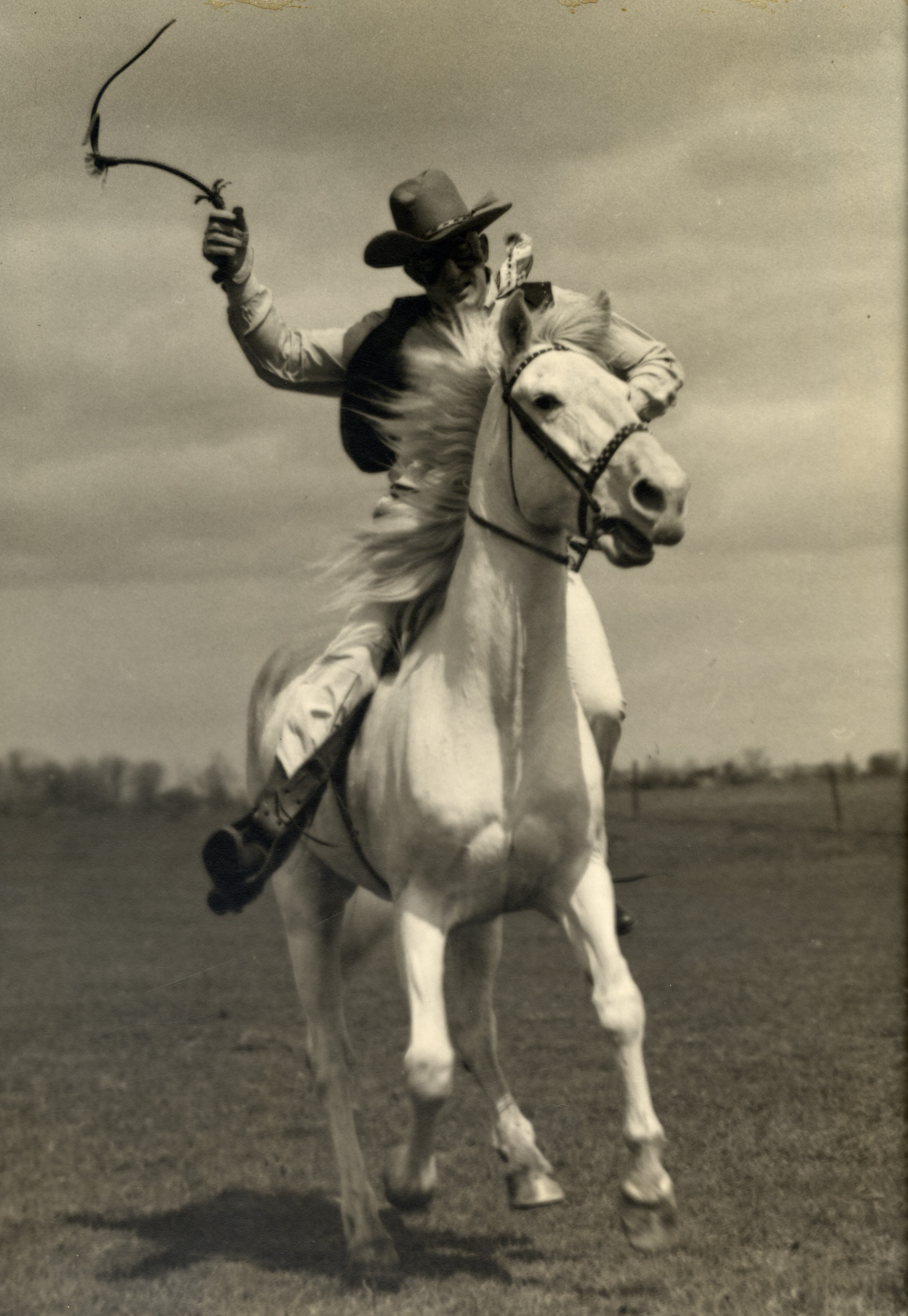 Favorite this☆ Brace Beemer, dressed as Lone Ranger, on horseback Description: View of actor Brace Beemer, dressed as Lone Ranger, on horseback. Handwritten on back: "Beemer, Brace, 1903-1965." Details Resource ID: bh009948 Subject: Beemer, Brace, 1903-1965 Horses Lone Ranger (Fictitious character) Photographic prints Date Issued: Unknown year Format: 1 photographic print ; 17 x 12 in. Member of: Burton Historical Collection Filing Location: LB/Beemer, Brace Rights: Physical rights are retained by DPL. Copyright is retained in accordance with U.S. copyright laws.