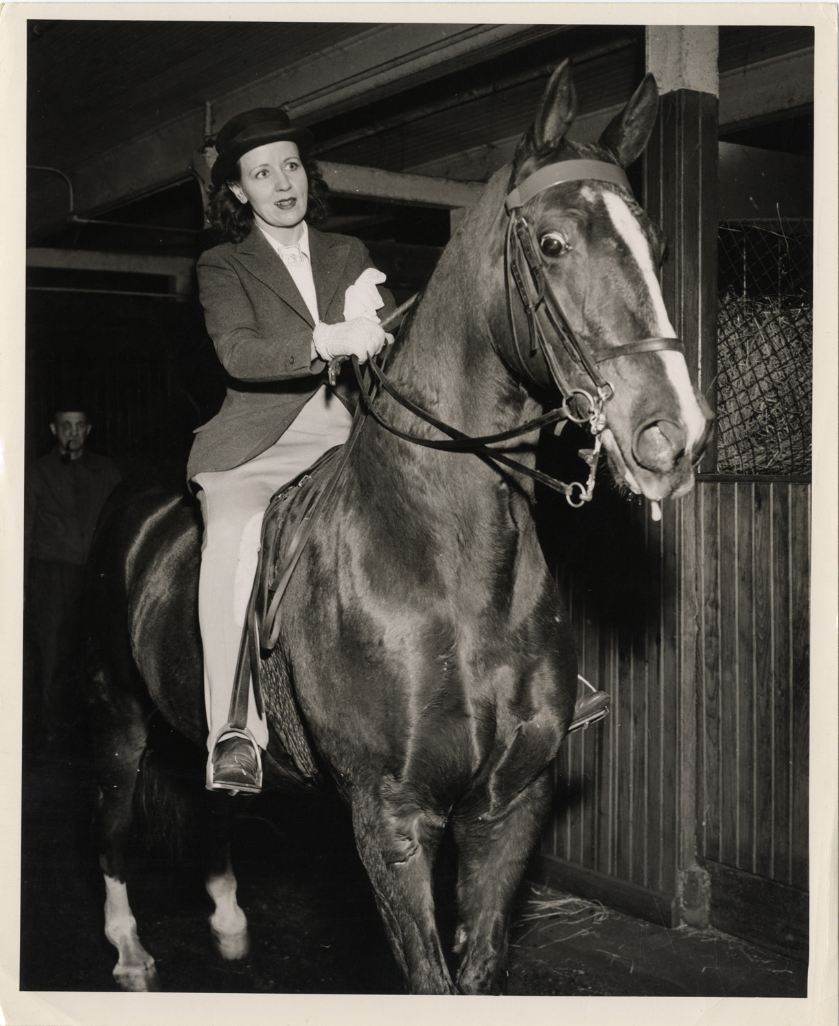 Favorite this☆ Leta Beemer on horseback Description: View of Leta Wales Beemer, wife of actor Brace Beemer, riding a horse. Handwritten on back: "Beemer, Brace, 1903-1965." Details Resource ID: bh009994 Subject: Beemer, Brace, 1903-1965--Family Horsemen and horsewomen Horses Photographic prints Date Issued: Unknown year Format: 1 photographic print ; 10 x 8 in. Member of: Burton Historical Collection Filing Location: E&M B B392 Rights: Physical rights are retained by DPL. Copyright is retained in accordance with U.S. copyright laws.