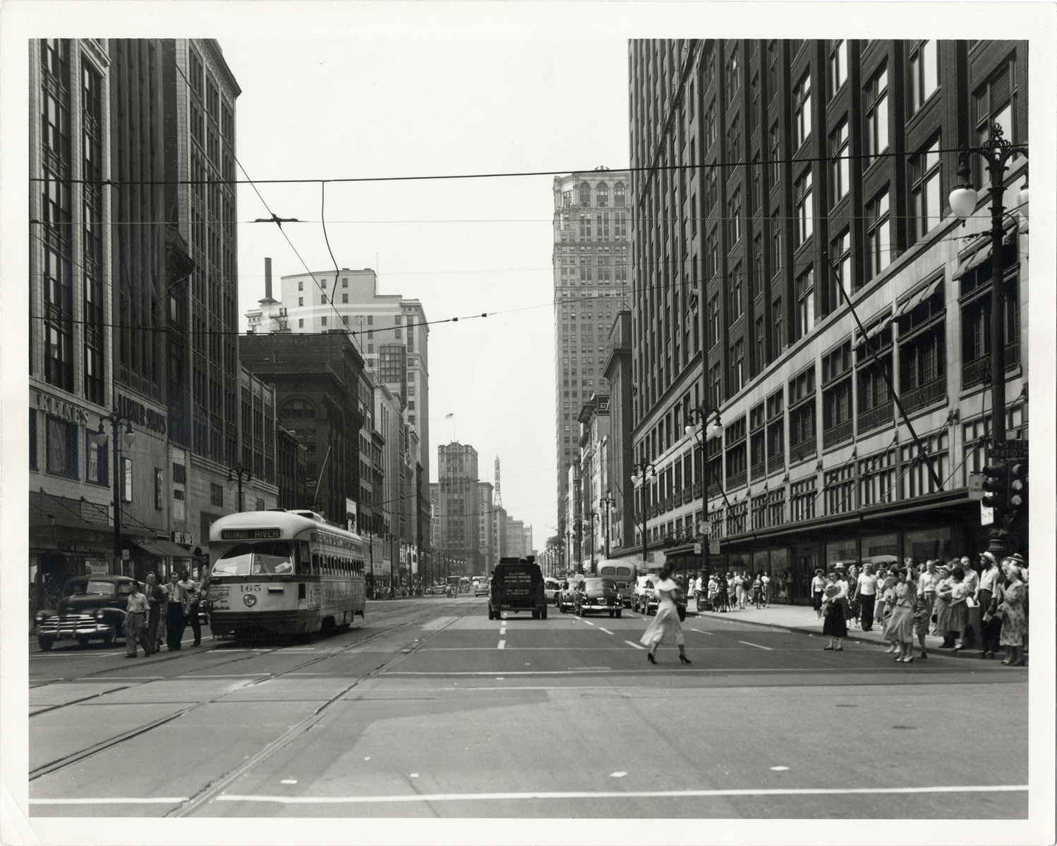 Favorite this☆ Woodward Avenue Description: View of commercial buildings, electric bus and pedestrians on Woodward Ave. in Detroit, Michigan. Details Resource ID: bh010012 Subject: Woodward Avenue (Mich.) Buses, Electric--Michigan--Detroit Commercial buildings--Michigan--Detroit Photographic prints Date Issued: Unknown year in the decade of the 1950s Format: 1 photographic print ; 8 x 10 in. Member of: Burton Historical Collection Filing Location: D/Streets-Woodward, 1950s Rights: Physical rights are retained by DPL. Copyright is retained in accordance with U.S. copyright laws.