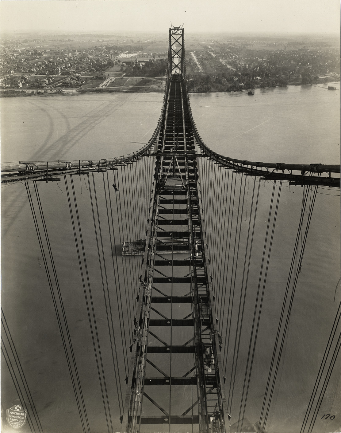 Favorite this☆ Ambassador Bridge Description: Bird's-eye view of Ambassador Bridge over the Detroit River. Printed on front: "[copyright] American Commercial Photo Co., Detroit, 1928." Details Resource ID: bh010063 Creator: American Commercial Photo Co. Subject: Ambassador Bridge (Detroit, Mich., and Windsor, Ont.) Suspension bridges Photographers--Michigan--Detroit Photographic prints Date Issued: 1928 Format: 1 photographic print mounted on fabric ; 9.5 x 7.5 in. Member of: Burton Historical Collection Filing Location: D/Bridges-Ambassador-Construction-[no date] Rights: Physical rights are retained by DPL. Copyright is retained in accordance with U.S. copyright laws.