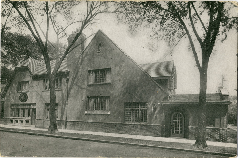 View of the Society of Arts and Crafts building at 47 Watson Street in Detroit, Michigan, designed by William B. Stratton and Maxwell Grylls. Printed on back: "Society of Arts & Crafts, Detroit, Mich. The Society of Arts and Crafts was formed to bring to Detroit the best in contemporary craftsmen's work. It maintains an exhibition gallery and salesroom which is open to the public. Its educational work is the maintenance of an art school, housed in the same building. The membership of the Society consists of persons who are interested in its purposes, whether or not they are actively engaged in the practice of some branch of handicrafts. 47 Watson Street."
