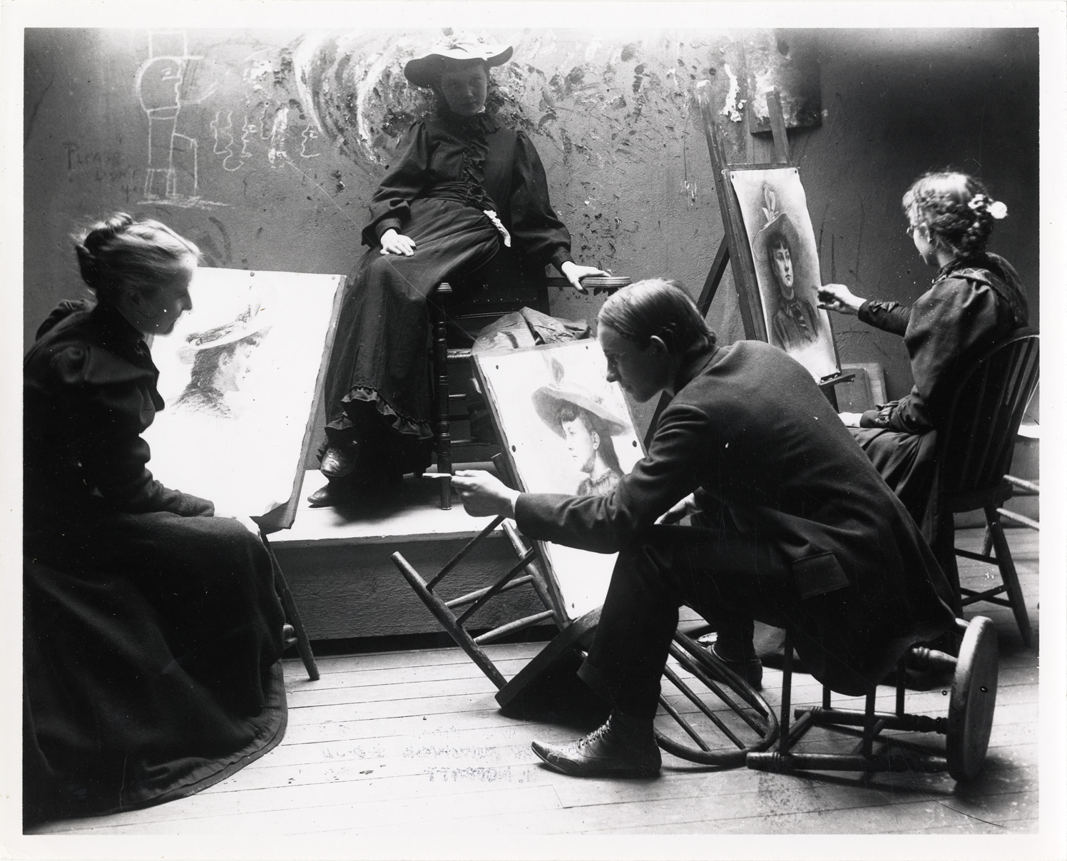 Favorite this☆ Art students sketching, Detroit School of Fine Arts Description: View of group of art students at the Detroit School of Fine Arts sketching a model seated on a platform; model wears long dress and plumed hat. Details Resource ID: bh010089 Subject: Art students--Michigan--Detroit Artists' models--Michigan--Detroit Photographic prints Date Issued: Unknown year Format: 1 photographic print ; 8 x 10 in. Member of: Burton Historical Collection Filing Location: D/Schools-Detroit School of Fine Arts Negative Number: BHC glass neg. no. 4894 Rights: Physical rights are retained by DPL. Copyright is retained in accordance with U.S. copyright laws.