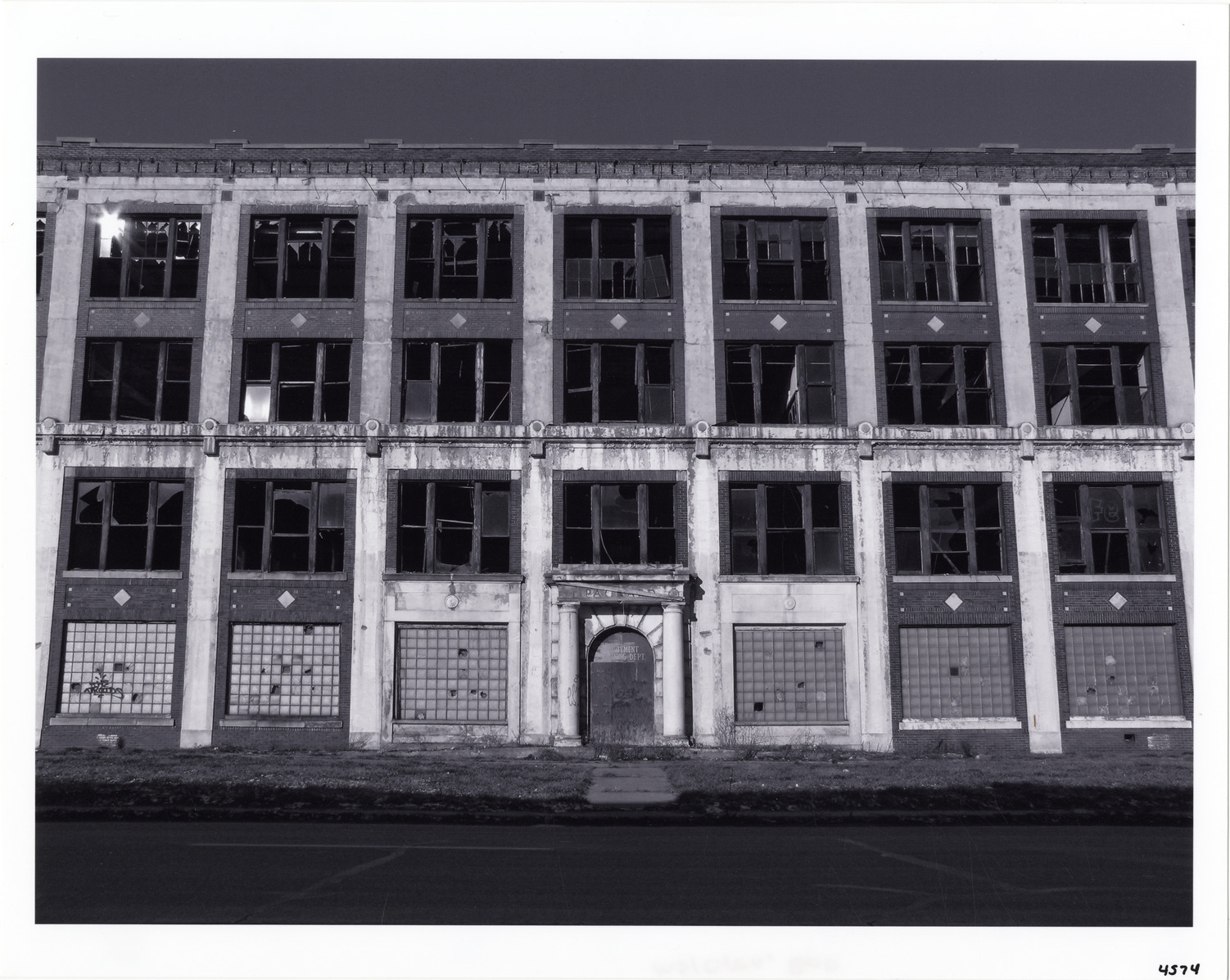 View of facade of Packard Building. Abandoned building has broken windows; entrance is boarded up with plywood. "Employment Training Dept." is painted on entrance. Label on back: "Packard Building, 1/07. Grand Blvd. Architect: Albert Kahn, 1907. Photograph by Bob Oren. www.detroit-photos.com. This image is for reference only. The duplication, copying, printing, scanning or any other reproduction of this photograph, in whole or in part, is strictly prohibited without the written authorization of the Detroit Public Library."