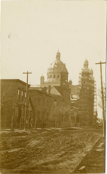 Favorite this☆ St. Casimir Church Description: Distant view of St. Casimir Catholic church, located at the corner of 23rd and Myrtle Streets. Commercial buildings and dirt street in foreground. Tower is surrounded by scaffolding. Handwritten on back: "Cor. 23rd & Myrtle Sts. Polish church." Details Resource ID: bh010272 Subject: Catholic church buildings--Michigan--Detroit St. Casimir Catholic Church (Detroit, Mich.) Commercial buildings--Michigan--Detroit Dirt roads--Michigan--Detroit Photographic prints Format: 1 photographic print ; 4.75 x 3 in. Member of: Burton Historical Collection Filing Location: D/Churches, R.C.-St. Casimir (Polish) Negative Number: BHC glass neg. no. 1994 Rights: Physical rights are retained by DPL. Copyright is retained in accordance with U.S. copyright laws.
