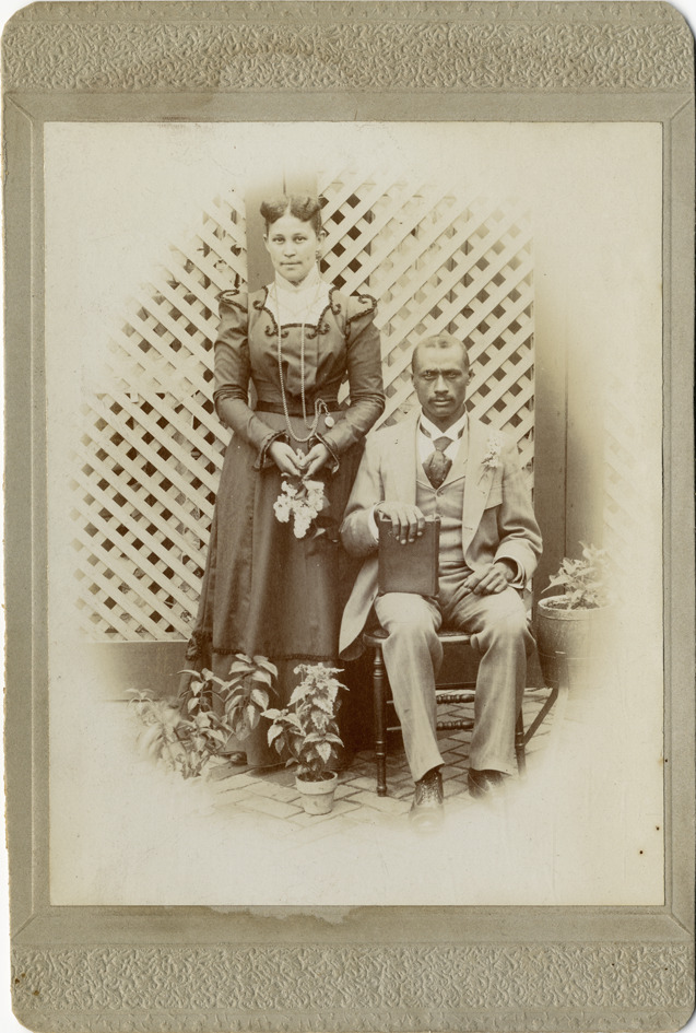 Favorite this☆ Wright family Description: Portrait of the Wright family. Man sitting on chair, poses with bible; standing woman holds a bouquet of flowers. Handwritten on back: "Wright. Fort Wayne, Indiana. Methodist church members." Details Resource ID: bh010283 Subject: African American men--Indiana--Fort Wayne--Portraits African American women--Indiana--Fort Wayne--Portraits Wright family Cabinet photographs Albumen prints Photographic prints Format: 1 cabinet card ; image 4.75 x 3.75 in. Member of: Burton Historical Collection Filing Location: Albumen prints--Misc. Rights: Physical rights are retained by DPL. Copyright is retained in accordance with U.S. copyright laws.