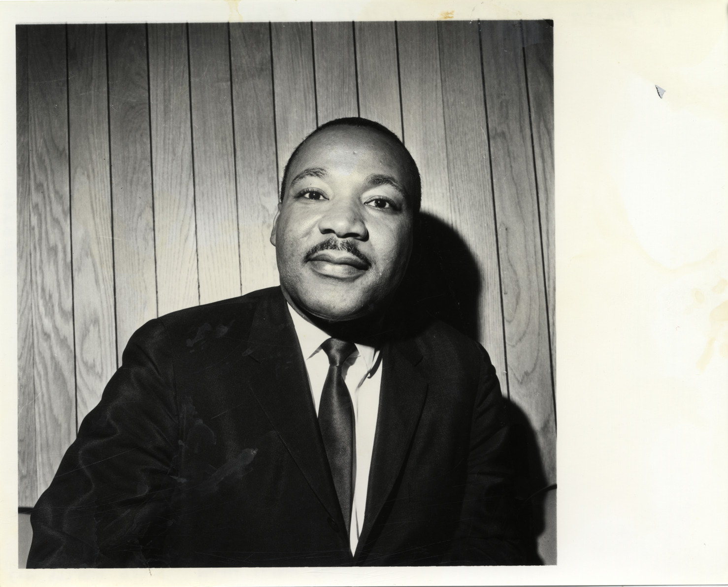 Favorite this☆ Martin Luther King, Jr. Description: Portrait of Martin Luther King, Jr. Handwritten on back: "Dr. Martin Luther King, leader. 11-18-65 files." Details Resource ID: bh010299 Subject: King, Martin Luther, Jr., 1929-1968 Photographic prints Format: 1 photographic print ; 8 x 10 in. Member of: Burton Historical Collection Filing Location: E&M 977.404 923.9 King, Martin Luther, Jr.<br> D/Visitors-Martin Luther King (1950s-1960s) Rights: Physical rights are retained by DPL. Copyright is retained in accordance with U.S. copyright laws.