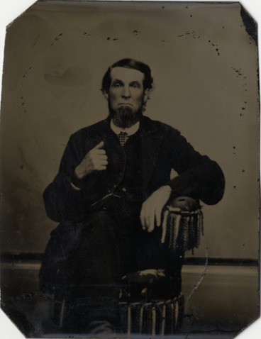 Favorite this☆ Thomas Bedford Description: Portrait of Thomas Bedford, husband of Ruth Ann Bedford. Details Resource ID: bh010305 Subject: Men--Portraits Bedford family Tintypes Format: 1 photograph ; sixth plate tintype Member of: Burton Historical Collection Filing Location: MS/Bedford family Rights: Physical rights are retained by DPL. Copyright is retained in accordance with U.S. copyright laws.